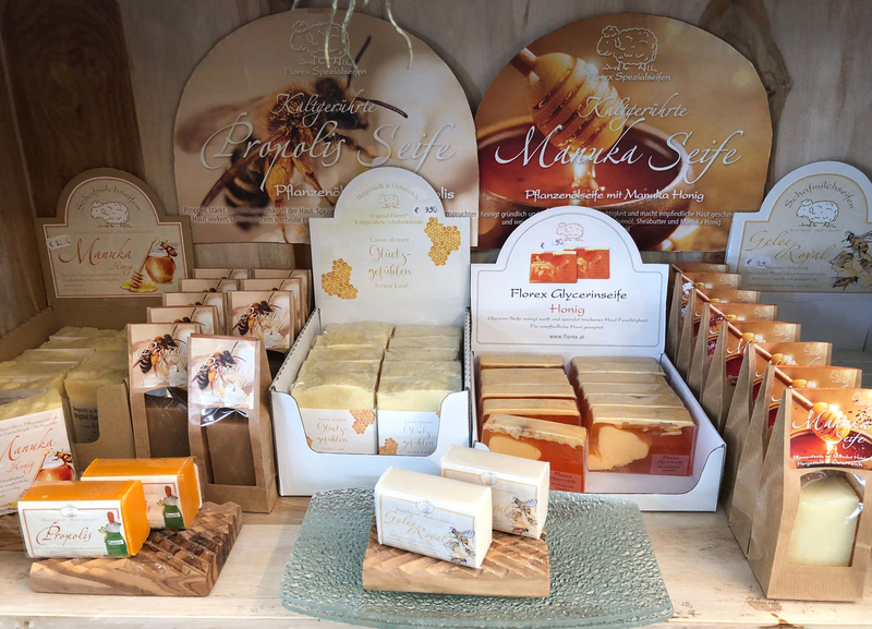 Bodybutter, Cremes, Seifen, Haarseife, Duschbad, Manuka-Honig-Seife, Kräuterseifen, Rasier- und Salzseife.